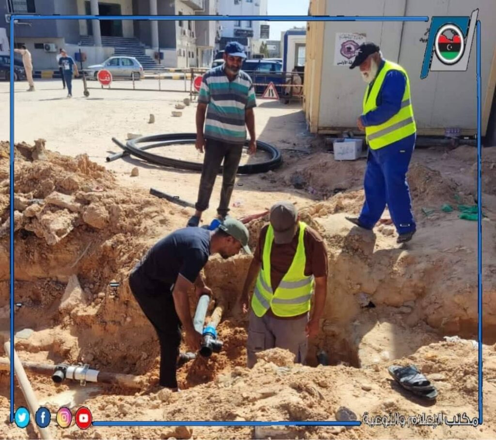 قامت فرقة صيانة شبكات مياه الشرب بمكتب خدمات الزاوية التابع لإدارة التشغيل والصيانة الغربية بصيانة خطين مياه شرب بقطر 2,5بوصه وقطر 3بوصة بالطريق الرابط بين شارع جمال عبد الناصر ونادي الأولمبي بالزاوية.