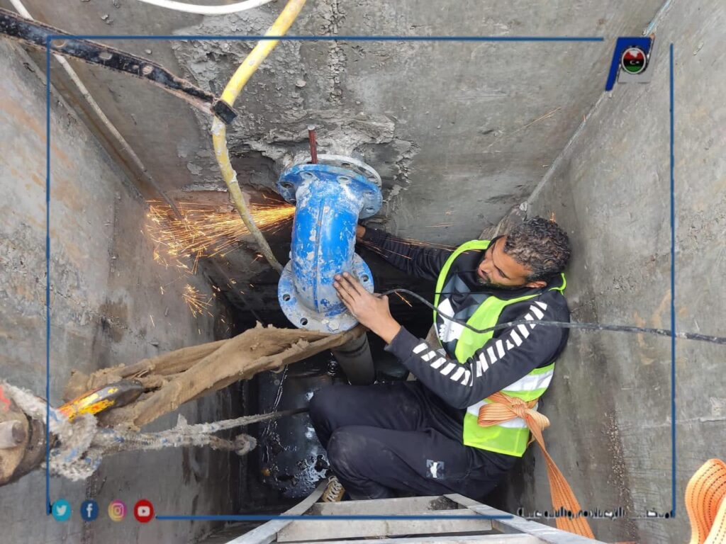 قامت فرقة الصيانة لشبكات مياه الأمطار و الصرف الصحي بمكتب خدمات الزاوية التابع لإدارة التشغيل والصيانة الغربية ، بأعمال الصيانة لمضخة غاطسة بقوة 20حصان بخزان تجميع مياه الغيث النافع بطريق الساحلي بالتحديد مدخل الزاوية الشرقي .