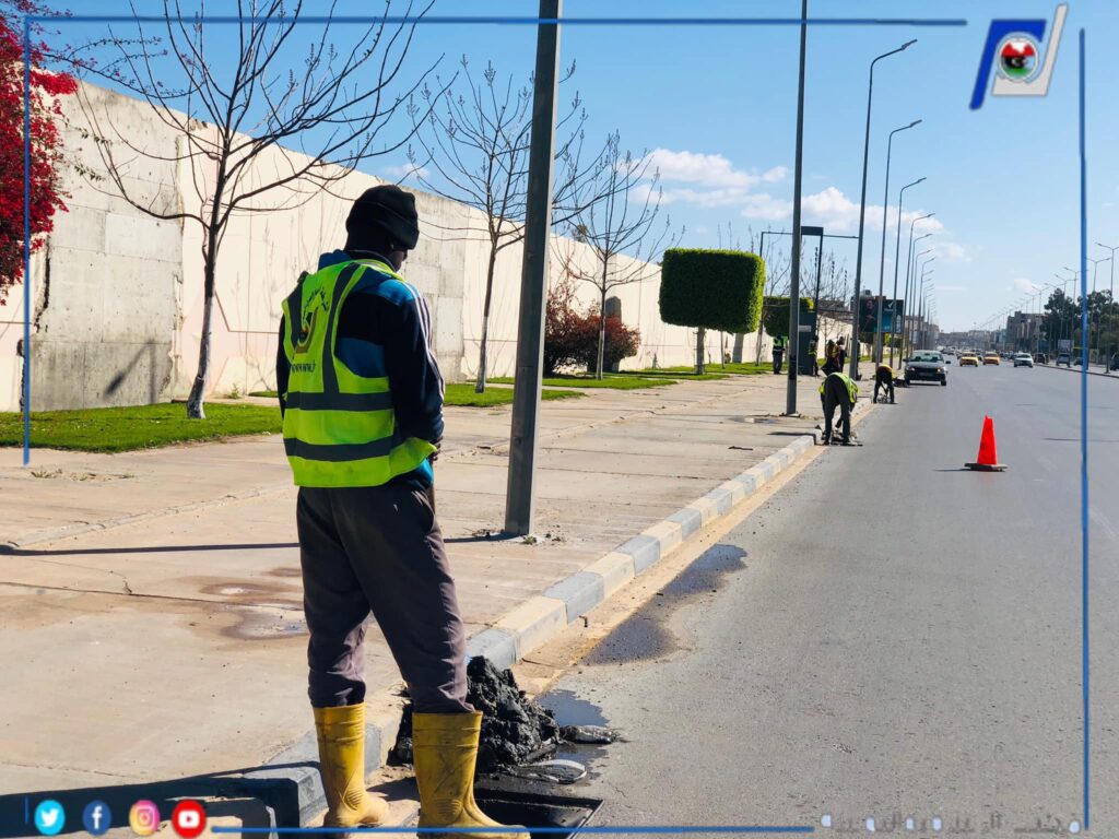 قام قسم الصرف الصحي بمكتب خدمات غـريان التابع لإدارة التشغيل والصيانة بمنطقة الجـبل الغـربي بأعمال تنظيف وتسليك خط وعدد غرف صرف صحي بشارع العيادة المجمعة.