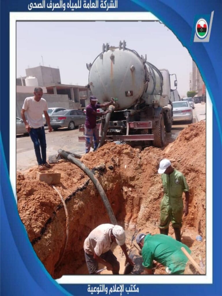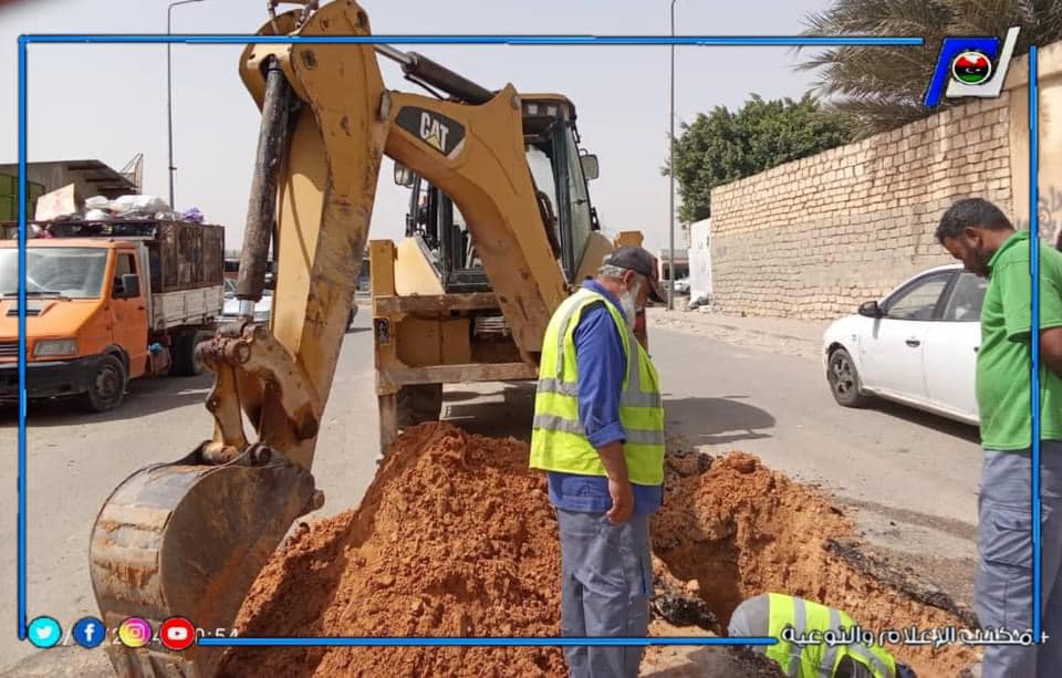 قامت فرقة الصيانة التابعة لوحدة المياه بمركز خدمات عين زاره التابع لمكتب خدمات شرق طرابلس بإدارة التشغيل والصيانة بمنطقة طرابلس بصيانة خطين مياه قطر 2 بوصة بطريق 20 رمضان بالقرب من مقبرة أبو دينار .