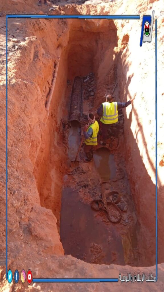 قام فرقة صيانة الشبكات الصرف الصحي ومياه الأمطار بمكتب خدمات الزاوية التابع لإدارة التشغيل والصيانة الغربية، الصيانة لخط الصرف الصحي الرئيسي ومياه الأمطار بقطر 400مم وعمق 4متر وتم تركيب مسافة 6 متر خط مياه الصرف الصحي و تركيب خط مياه الأمطار بمسافة 12 متر بشارع الجمهورية بالتحديد قرب من مبنى التفتيش التربوي بالزاوية خلف عمارات …