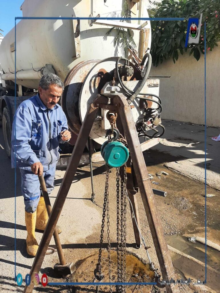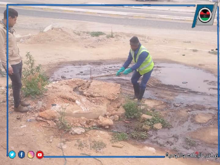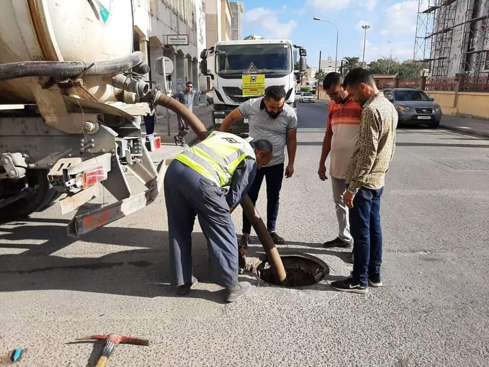 قامت فرقة شبكات الصرف الصحي التابعة لمركز وسط المدينة التابعة لمكتب خدمات مصراتة التابع لإدارة التشغيل والصيانة المنطقة الوسطى بالتعاون مع قسم الخدمات بمكتب خدمات مصراتة بتسليك وشفط خط صرف صحي بشارع الجوازات .