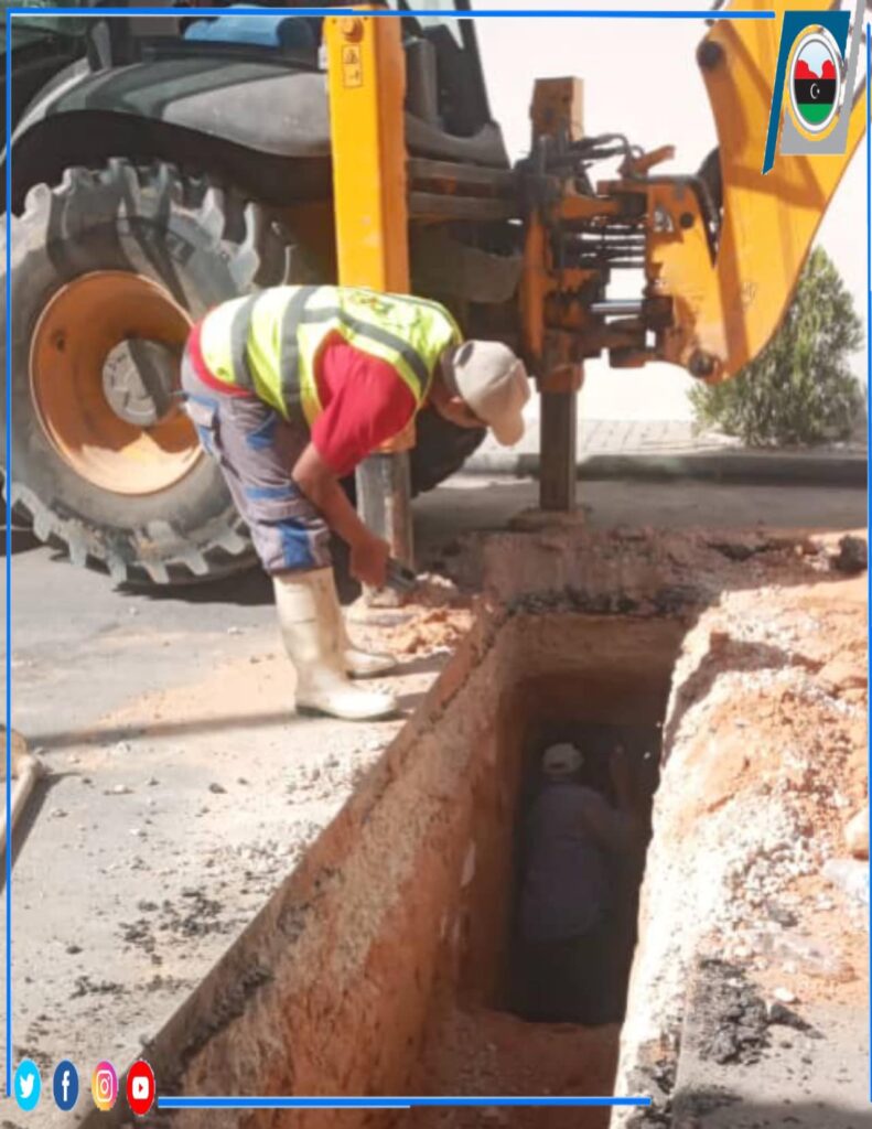 قام فرقة صيانة شبكات مياه الشرب بمكتب خدمات الزاوية التابع لإدارة التشغيل والصيانة الغربية ، حيث يتم الان صيانة خطين مياه شرب بقطرين الأول رئيسي 3بوصة وتاني منزلي بقطر 1 بوصه بالطريق العام جنوب الطريق الساحلي بالتحديد طريق البرناوي تقاطع الزرقاني .