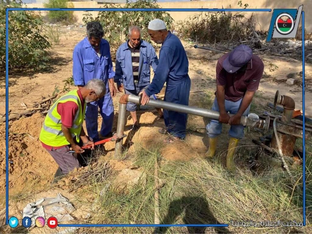 قامت فرقة الصيانة بمكتب خدمات الزاوية التابع لإدارة التشغيل والصيانة الغربية ، بأعمال صيانة خط مياه امطار رئيسي بقطر 600 ،على عمق 6 متر ، وسيتم تغيير الخط بالكامل بطول 50متر بالطريق العام المتفرع من شارع الضمان (الطريق مابين شارع الضمان وشارع الإصلاح).